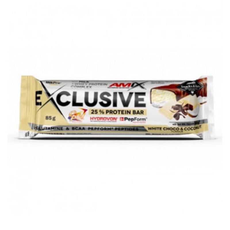Exclusive Protein Bar от известного английского бренда Amix – универсальный белковый батончик, состав которого заслуживает особого внимания. Протеиновая составляющая здесь представлена в виде уникальной авторской формулы MilkPro Protein Blend. Это сбалансированный микс сывороточного концентрата и гидролизата сывороточного изолята, дополненный ВСАА и глютамином и усиленный прошедшими гидролизацию пептидами.