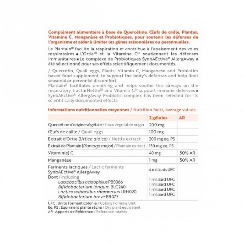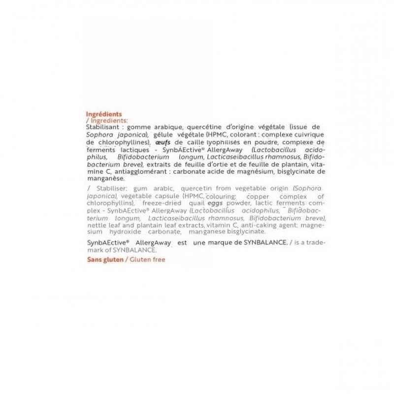 Кверцетин растительного происхождения из японской софоры (Styphnolobium japonicum) в сочетании с лиофилизированными перепелиными яйцами являются натуральными активными ингредиентами, которые помогают комфорту дыхательных путей в случае сезонной или хронической аллергии.