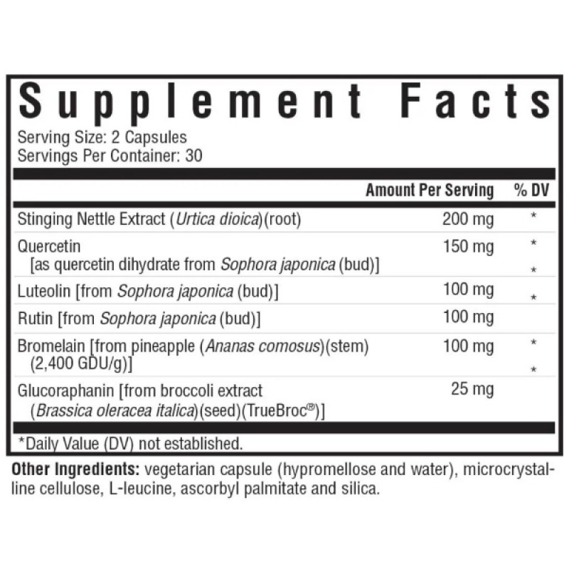 В состав комплекса HistaminX входят биофлавоноиды, ферменты и другие растительные соединения, которые эффективно нейтрализуют действие сезонных аллергенов. Эти антиоксидантоподобные соединения могут помочь модулировать реакцию организма на гистамин и поддерживать его здоровый уровень. Кверцетин стимулирует иммунную функцию и опорность организма. Растительные экстракты в составе нужны для поддержки дыхания. Листья крапивы традиционно используются для поддержания здоровья дыхательных путей, мочевыводящих путей и слизистых оболочек. Бромелайн - это фермент, содержащийся в ананасе, он используется в качестве пищеварительного фермента и считается, что он помогает поддерживать нормальные воспалительные и заживляющие реакции. Глюкорафанин - соединение, содержащееся в крестоцветных растениях рода, он поддерживает здоровые процессы детоксикации, сильную иммунную систему и обеспечивает митохондриальную поддержку. Формула использует гомеопатический подход, чтобы стимулировать естественные защитные механизмы организма и привести системы организма в здоровый баланс.