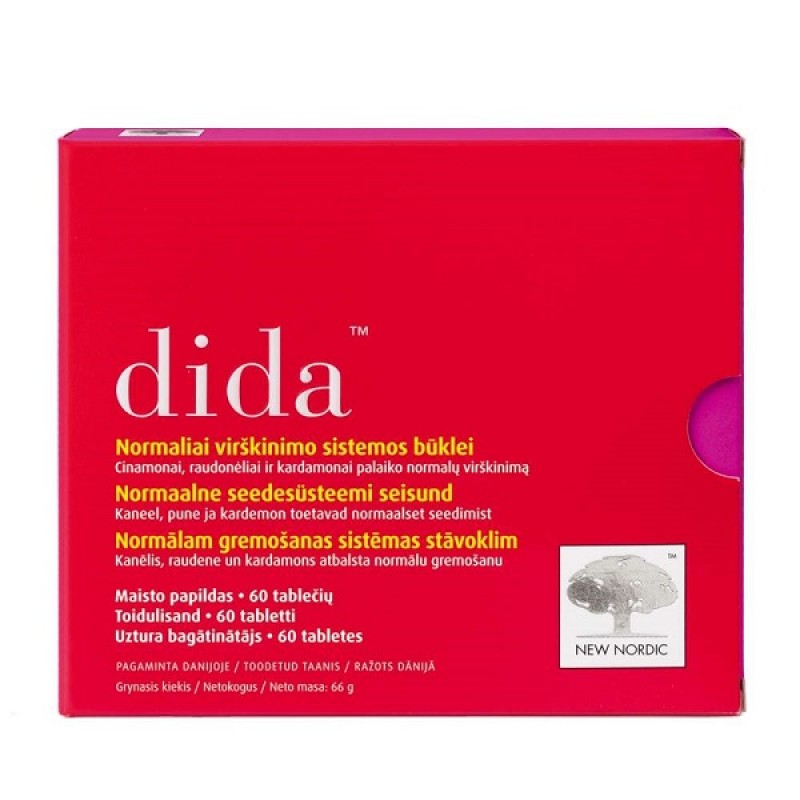 Dida – из растительных экстрактов и эфирных масел, способствует поддержанию здорового баланса бактерий в кишечнике, препятствует избыточному росту грибков в организме, прежде всего, – грибков рода кандида (Candida albicans). Восстанавливает работу кишечника и всей пищеварительной системы.