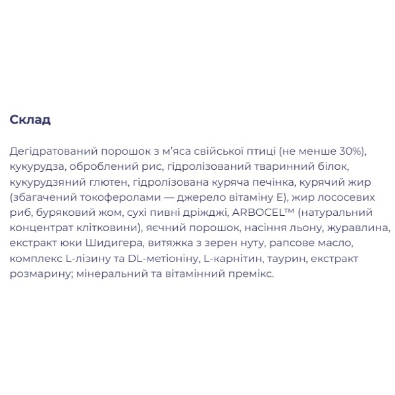Таурин для семейства кошачих - корма Ройчер™ содержат таурин, необходимый кошке для правильной работы сердечной мышцы, предотвращения дистрофии сетчатки глаз, для развития и поддержания целостности нервной ткани и других метафизических процессов в организме. В отличие от других животных, у домашних кошек потребность в таурине не может полностью покрываться за счет его синтеза печенью из серосодержащих аминокислот.