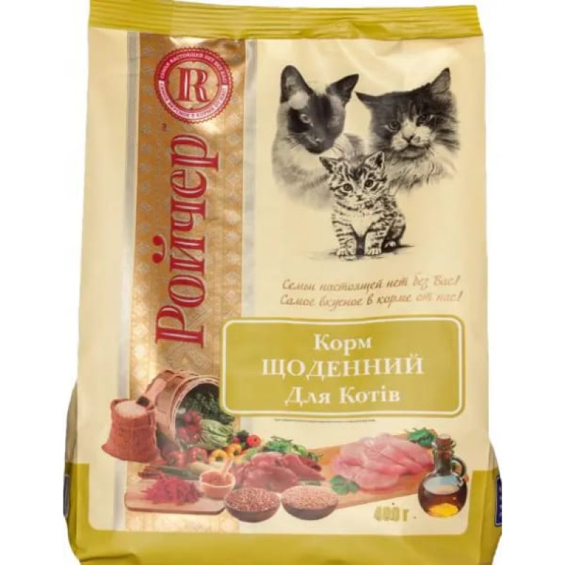 Ройчер ежедневный Ежедневный корм для взрослых кошек всех пород. Куриное мясо, куриная печень гидролизованная. 400г