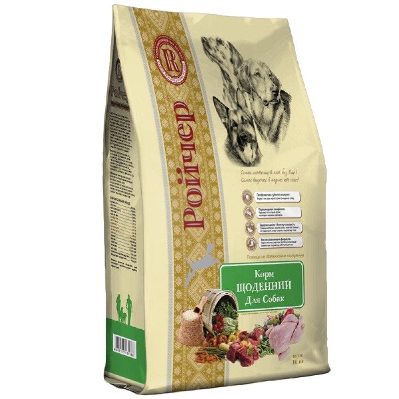 Формула разработана для того, чтобы полностью соответствовать всем необходимым нормам кормления взрослых собак со средней физической активностью. Данный корм идеально подходит как для собак домашнего содержания, так и для собак, живущих на свежем воздухе (за исключением зимних месяцев). Прекрасно сбалансированный состав с выверенным соотношением и количеством протеина и жиров. Корм имеет превосходный вкус и не содержит красителей, искусственных антиоксидантов и вкусовых добавок. Ройчер Щоденний это ежедневное питание. Корм поддерживает здоровье вашей собаки, насыщая её организм всеми необходимыми минералами и витаминами каждый день.