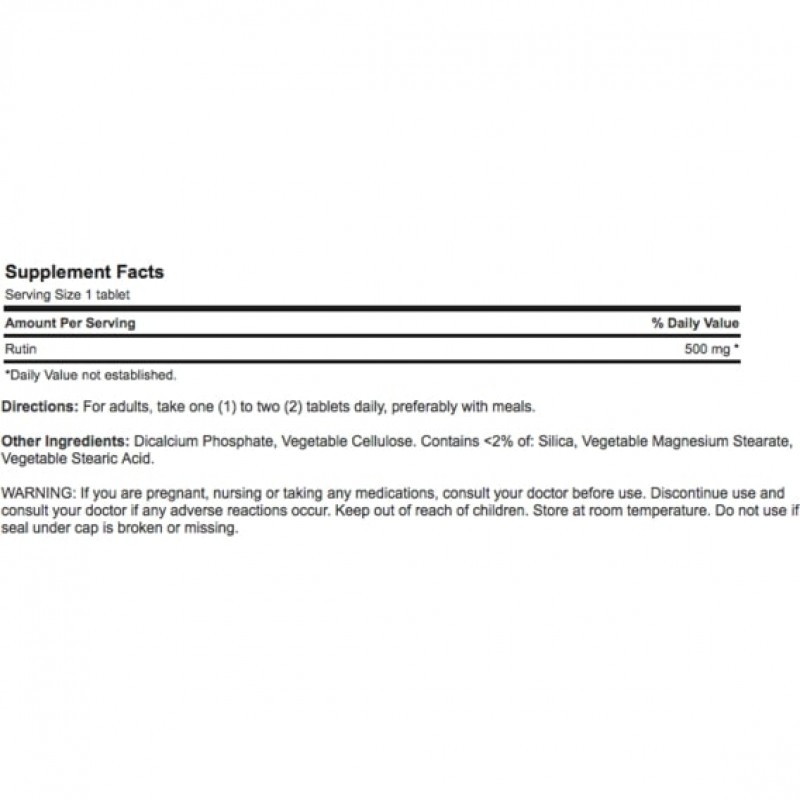 Puritan's Pride Rutin 500 mg - концентрация рутина (витамина Р). Витамин Р или рутин - это флавоноид, который очень много делает для нашего организма. Более правильно называть витамин Р, или рутин, не флавоноидом, а биофлавоноидом, веществом, замедляющим процессы старения. Рутин способен улучшить проницаемость капилляров, предотвратить их ломкость. Он также может помочь людям быть здоровыми и активными. Во время пищеварительного процесса большинство рутина метаболизируется в специальное вещество - кверцетин, который тоже является флавоноидом, растительным пигментом и антиоксидантом.