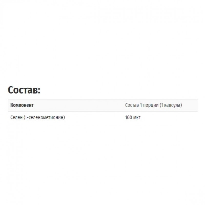 Селен без дрожжей (Selenium) - является незаменимым микроэлементом. Он является компонентом антиоксидантного фермента глутатионпероксидазы, которая помогает бороться со свободными радикалами, повреждающими клетки. Селен также помогает усваивать витамин E, оказывающий дополнительное антиоксидантное воздействие.