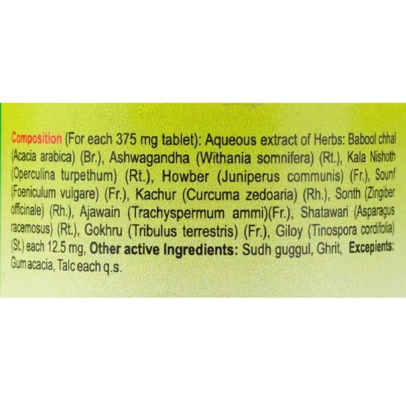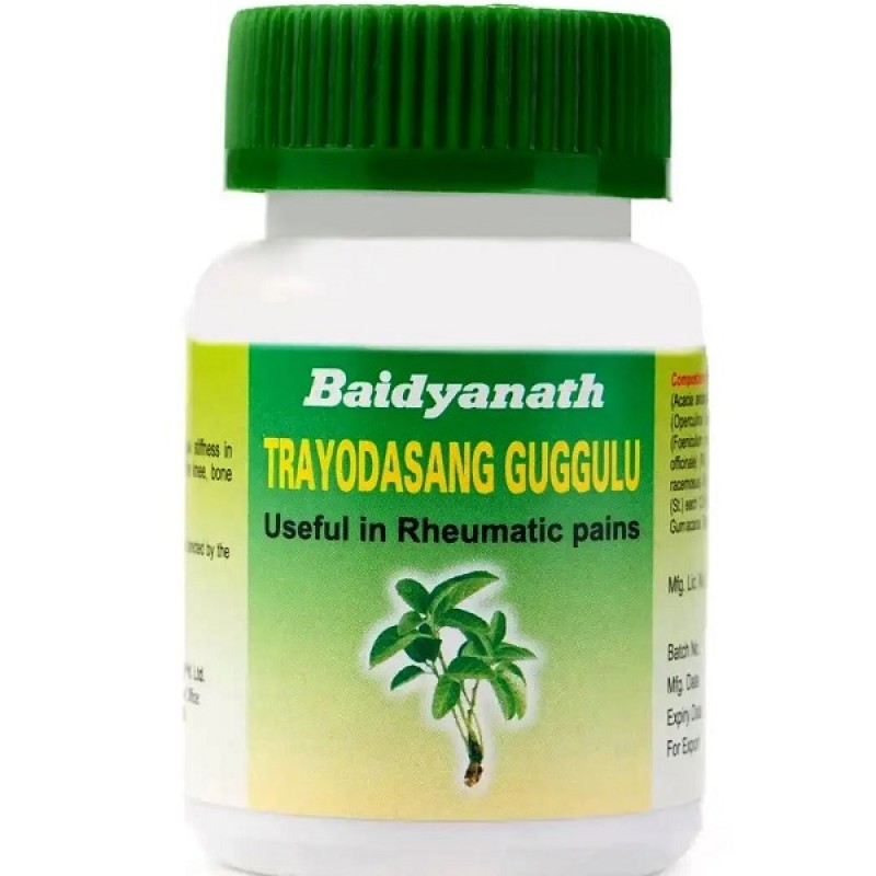 Trayodashang Guggulu Baidyanath – известный индийский препарат состоящий из натуральных компонентов который применяется при артрите, ревматизме, отеках, а также нормализует работу желудочно кишечного тракта.