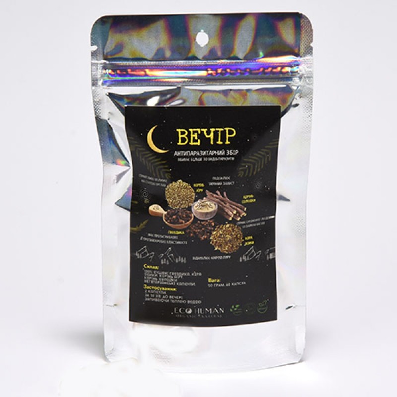 Детокс - Антипаразитарный сбор "Вечер" – это специальная смесь натуральных компонентов, которая помогает организму в процессе очищения и борьбы с паразитами. Сбор содержит кору осины, корень аира, корень солодки и гвоздику, известные своими антипаразитарными и детоксикационными свойствами.