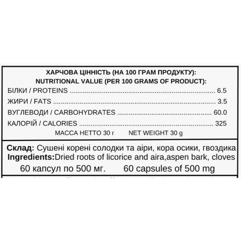 Кора осины, корень аира, корень солодки и гвоздика содержат активные компоненты, помогающие бороться с паразитами и поддерживающие процессы детоксикации. Кора осины содержит салициловую кислоту, которая обладает антипаразитарными свойствами, корень аира и корень солодки способствуют снижению воспаления и нормализации пищеварения, а гвоздика содержит эвгенол, усиливающий антипаразитарный эффект.