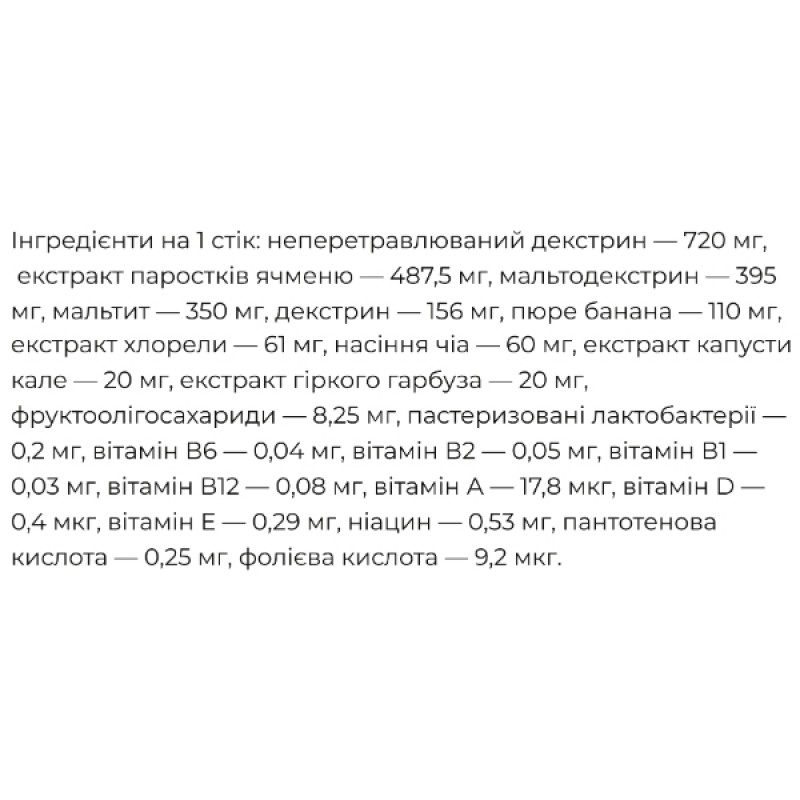 Рекомендовано принимать 1 стик в день, растворяя его содержимое в 80-100 мл теплой воды или молока.