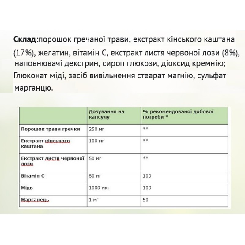 Биологически активная добавка для лечения и венозно-лимфатической недостаточности (с такими проявлениями, как тяжесть в конечностях, боль, отек, синдром усталых ног).