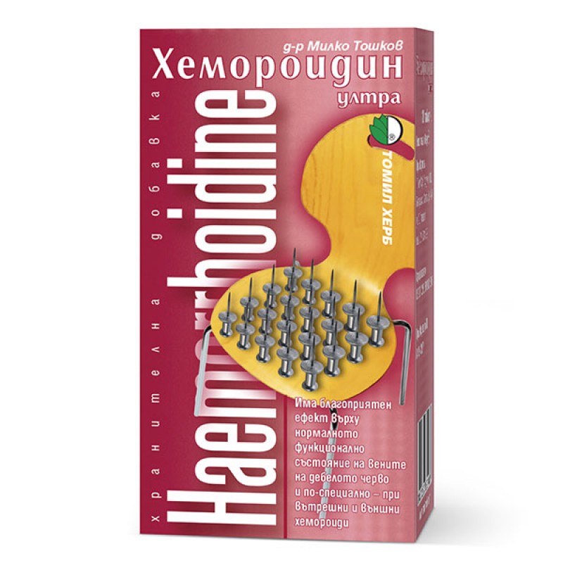 Благоприятно влияет на функциональное состояние вен толстого кишечника и специально на внутренний и наружный геморрой. Снимает воспаление и кровотечение из геморроидальных узлов. Уменьшает боль и спазмы, нормализует стул. Д-р Тошков применяет Хемороидин при лечении всех воспалений наружного и внутреннего геморроя, кровотечений, фистул и абсцессов толстого кишечника.