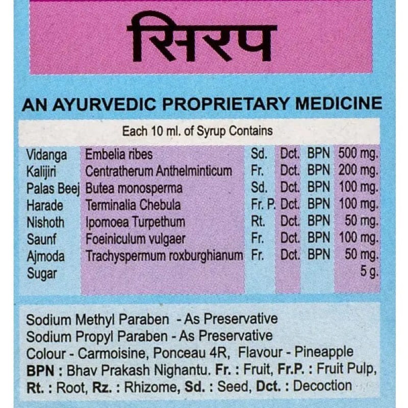 Kriminol syrup Vyas (сироп Криминол)– аюрведический сироп от паразитов. Избавляет от инородных организмов и предупреждает их повторное появление. Между тем помогает при аскаридозной инвазии. Устраняет тошноту и снимает спазмы. Поддерживает оптимальный ритм работы внутренних органов и нормализует пищеварение.