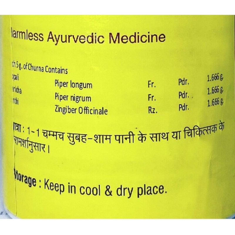 Трикату Чурна содержит три растения смешанные в равной пропорции: Индийский длинный перец, Черный перец и Имбирь лекарственный.