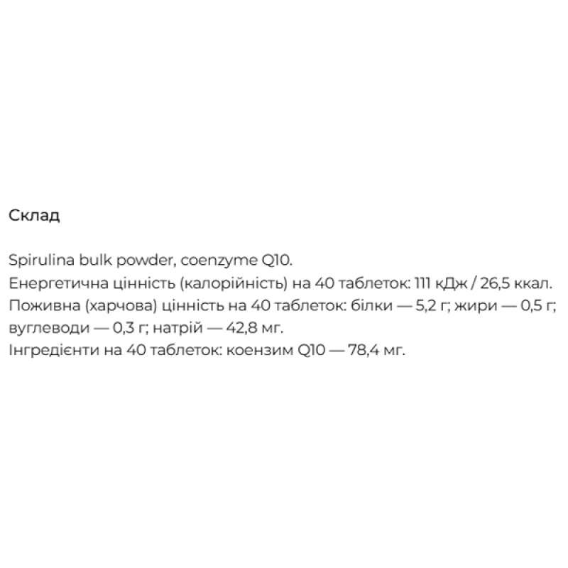 Препарат на основе спирулины в сочетании с коэнзимом Q10 обеспечит организм необходимым количеством витаминов, минералов и других микроэлементов, укрепит иммунитет, замедлит процессы старения, улучшит работу сердечно-сосудистой, нервной и пищеварительной систем, сохранит молодость кожи и подарит заряд энергии.