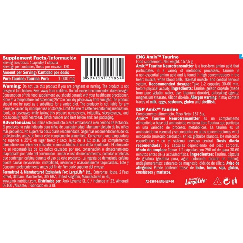 Amix Nutrition Taurine - это аминокислота в свободной форме, которая участвует в различных метаболических процессах.
