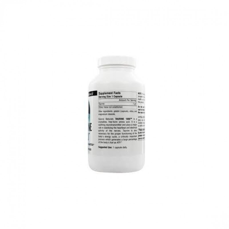 Таурин 1000 от Source Natural - это кристаллическая аминокислота в свободной форме. Она является успокаивающим нейромедиатором и играет важную роль в устойчивости сердцебиения и нервной электроактивности. Таурин также необходим для правильной работы энергетического цикла организма, критически важного процесса, в ходе которого производится большая доля энергии организма, такой как АТФ.