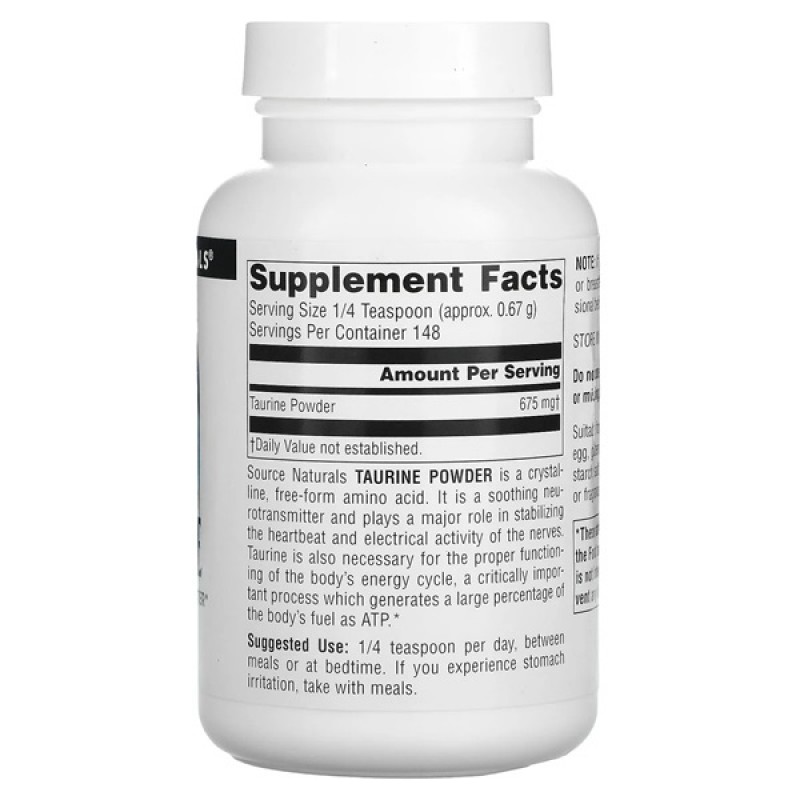 Порошок таурина от Source Naturals представляет собой кристаллическую аминокислоту свободной формы. Этот успокаивающий нейромедиатор играет важную роль в стабилизации сердцебиения и электрической активности нервов. Таурин также необходим для обеспечения надлежащего функционирования энергетического цикла организма, критически важного процесса, во время которого генерируется большой процент топлива организма в качестве ATP.