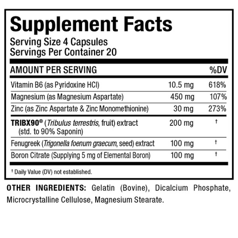 TestoFX Sport AllMax Nutrition создан на zma комплекса (цинк, магний, витамин B6), бора, а также растительных экстрактов триблуса и пажитника.