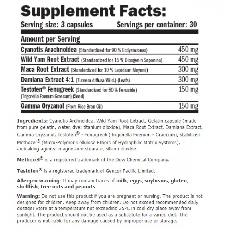 Ecdy Sterones сочетает в себе качественный бета экдистерон, и комплекс натуральних добавок для увеличения уровня тестостерона, состоящий из экстракта корня Дикого Ямса, экстракт корня Мака, экстрактGuggul, Гамма Oryzanol и экстракт травы Хорни Гот.