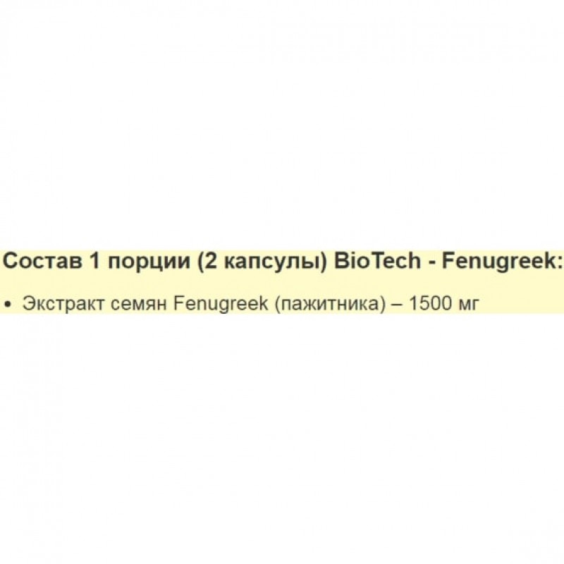 Пищевая добавка BioTech - Fenugreek – бустер тестостерона растительного происхождения. Экстракт растения пажитник давно используется для поддержания здоровья и улучшения пищеварения, восстановления физической силы после болезней и травм, для лечения импотенции и ряда других заболеваний. В современной практике экстракт пажитника сенного применяется для снижения уровня холестерина и уровня глюкозы в крови.