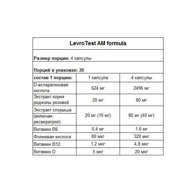 LevroTest состоит также из экстракта корня родиолы розовой, который является адаптогенным веществом и облегчает адаптацию организма к нагрузкам, одновременно уменьшая негативные последствия стресса. Действие родиолы розовой дополнительно усиливается ресвератролом, содержащимся в экстракте горца.