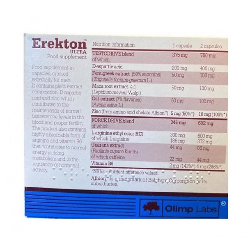 С заботой о мужском здоровье, компания Olimp Nutrition представляет уникальный и суперэффективный комплекс Erekton Ultra.Данный продукт заинтересует не только атлетов и лиц, ведущих активный образ жизни, но и людей, вовсе не связанных со спортом, однако, испытывающих проблемы с сексуальной функцией.