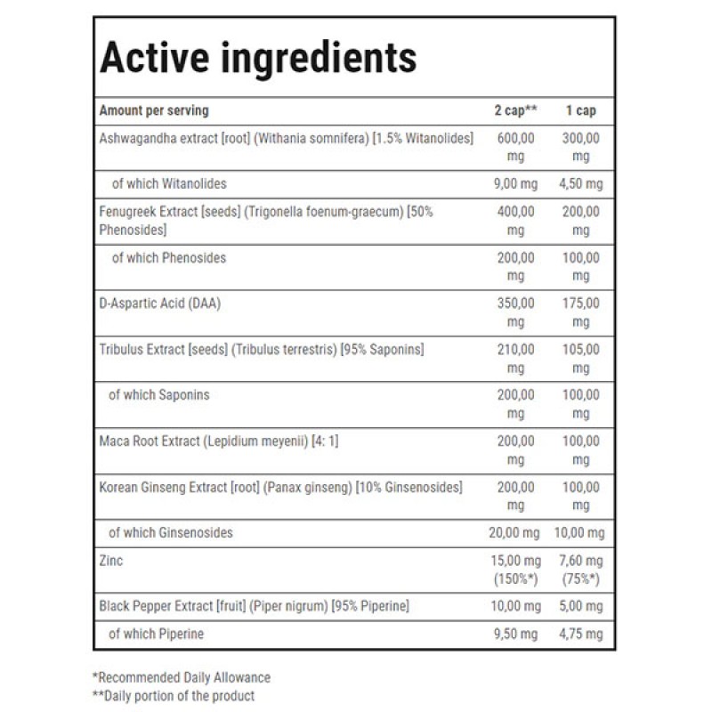 Среди основных эффектов чрезмерной выработки кортизола можно отметить усиление мышечного катаболизма и увеличение ненужной жировой ткани. Testoxx также обогащен ашвагандой, относящийся к группе адаптогенов, улучшающих работу иммунной системы, особенно в периоды физического и умственного истощения.