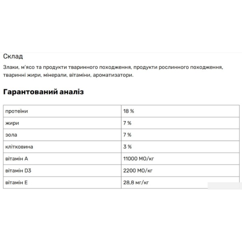 - Минералы и витамины: Добавлены важные минералы и витамины, которые способствуют поддержанию здоровья вашего питомца