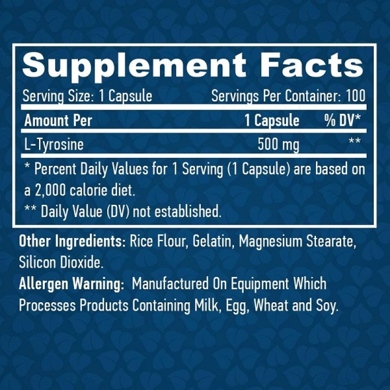 L-тирозин — незаменимая аминокислота, вырабатываемая в организме из фенилаланина (незаменимая аминокислота). Как предшественник адреналина, норадреналина, допамина и гормонов щитовидной железы, он чрезвычайно важен для обмена веществ. Тирозин поддерживает здоровую функцию надпочечников и гипофиза. Надпочечники регулируют гормоны стресса.