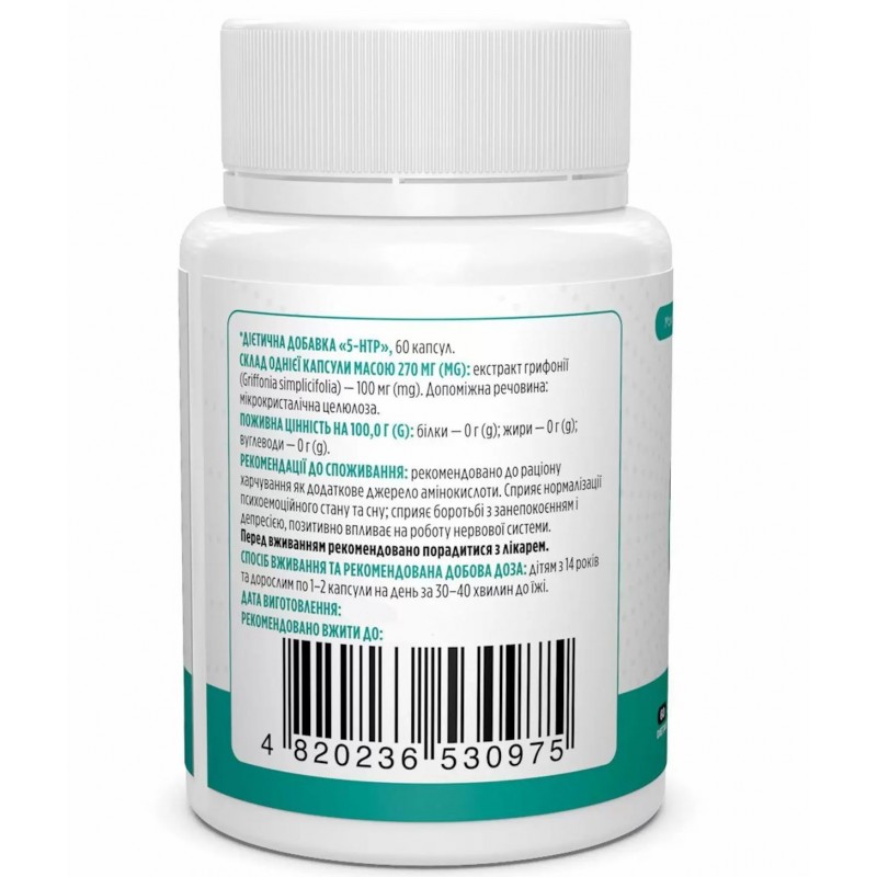 5-HTP (5-гидрокситриптофан), 5-HTP, Biotus - это пищевая добавка от украинского производителя Biotus, которая является натуральным источником аминокислоты, которая является предшественником серотонина. Серотонин, важный нейротрансмиттер мозга, играет ключевую роль в регулировании аппетита, настроения и производстве мелатонина. 5-HTP от Biotus получают из семян растения Griffonia, и он проникает в мозг легче и лучше переносится отдельными лицами. 5-HTP из экстракта грифонии способствует восстановлению сил во время сна, и налаживанию сна и психоэмоционального состояния. Основная функция препарата от украинского производителя 5-HTP в том, что он являются отличными натуральными безопасными и не вызывающими привыкания антидепрессантам, который борется с беспокойством и депрессией, положительно отражается на работе нервной системы.