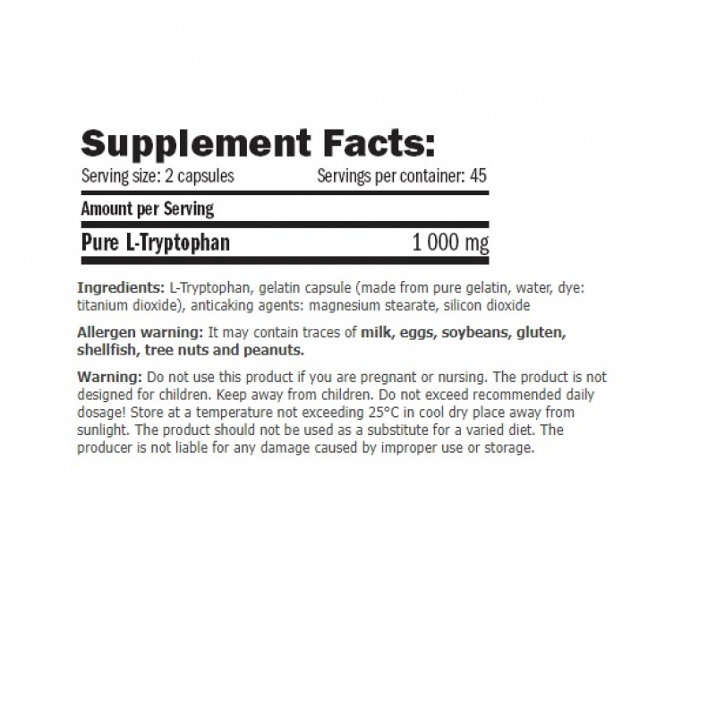 Прекрасно подойдет в качестве вспомогательного средства при умственной и физической работе. Улучшает когнитивные функции – работу мозга, концентрацию внимания, память. С другой стороны, триптофан улучшает качество сна и помогает бороться с депрессией — он является источником, среди прочего, ниацин, мелатонин и серотонин (это предшественник 5-HTP).