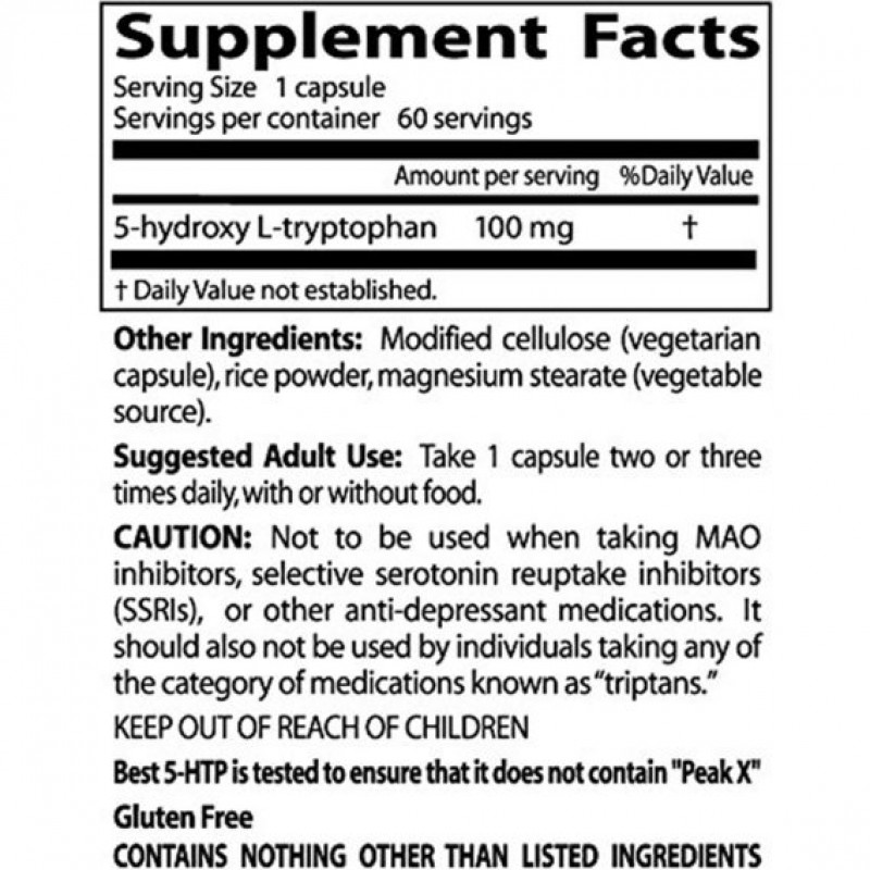 5-гидрокситриптофан от Doctor's Best не содержит загрязнителя "Peak X", что подтверждено результатами испытаний.