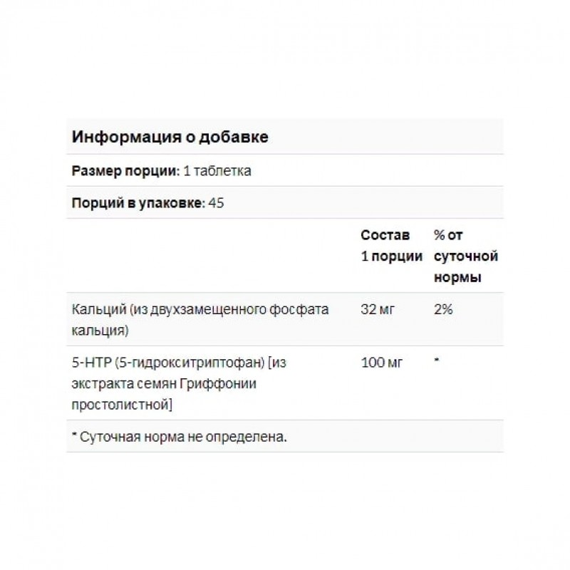 5-НТР (5-гидрокситриптофан) - безопасный натуральный антидепрессант. Стабилизирует настроение. Оказывает мягкое снотворное действие. Регулирует массу тела. Сдерживает тягу к потреблению алкоголя и углеводов. Вегетарианская формула.