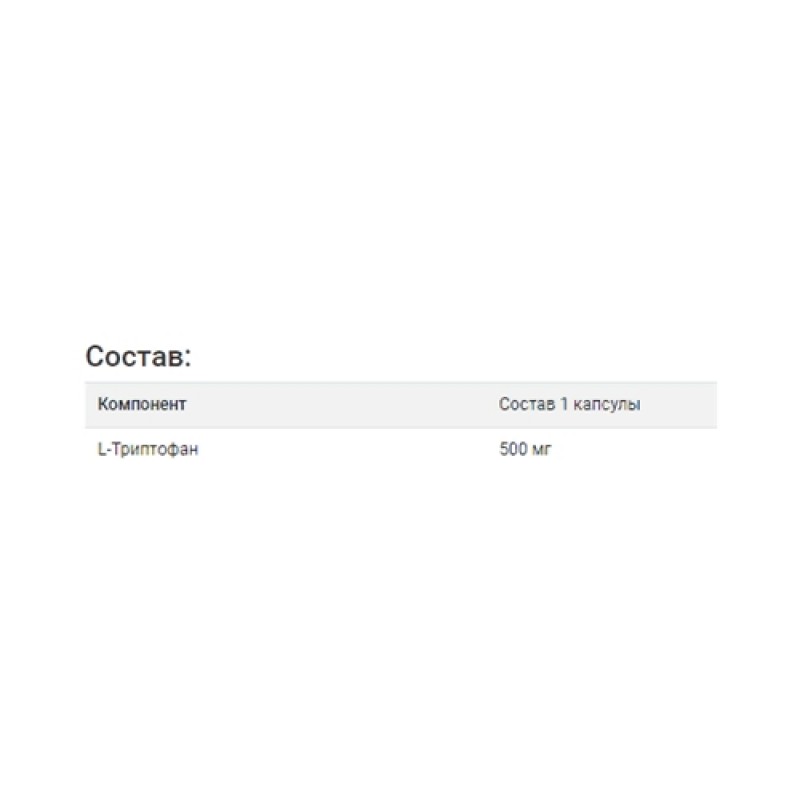 - L-Триптофан: 500 мг