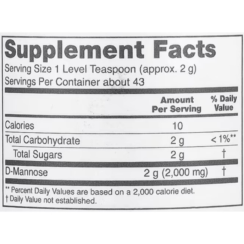 D-Mannose метаболизируется только в небольших количествах, а избыточное количество быстро выводится с мочой, поэтому он не будет мешать здоровой регуляции уровня сахара в крови.