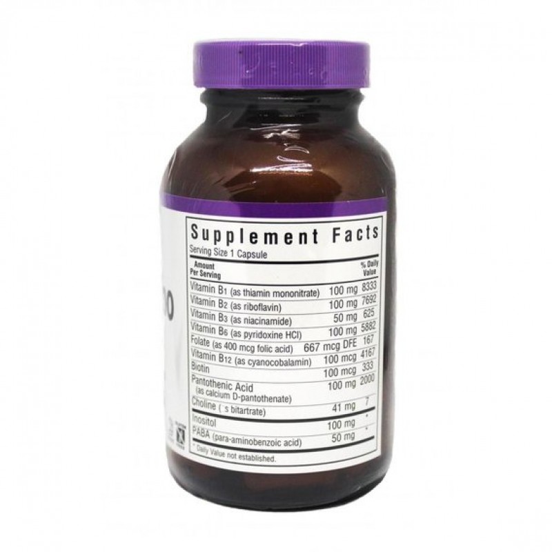 B-Complex 100 от Bluebonnet обеспечивает все водорастворимые витамины группы В, которые играют важную роль в клеточном метаболизме. Когда-то данная группа считалась одним витамином. Позже исследования показали, что они являются отдельными составляющими, которые часто сосуществуют в одних и тех же продуктах. Добавки, содержащие все восемь витаминов группы В (тиамин, рибофлавин, ниацин, пиридоксин, кобаламин, биотин, фолат, пантотеновая кислота), называются комплексом витамина В.