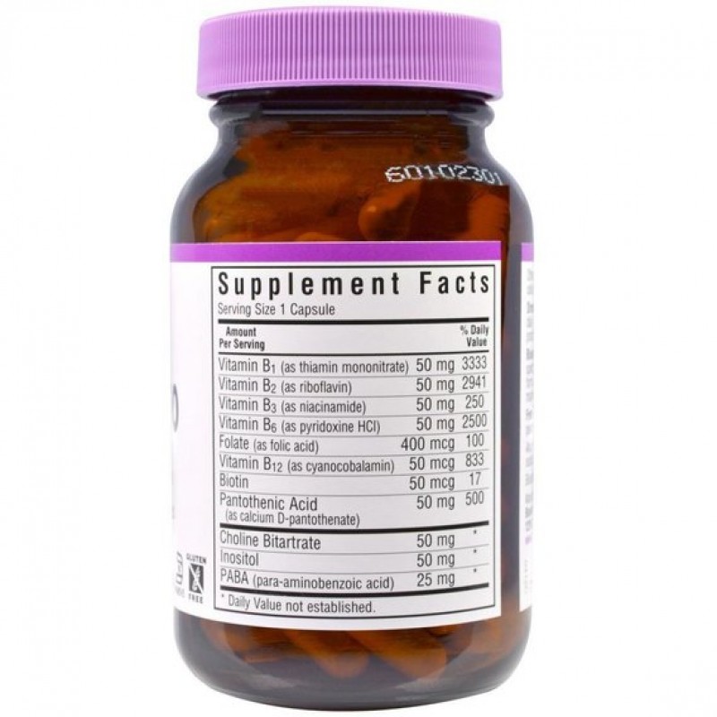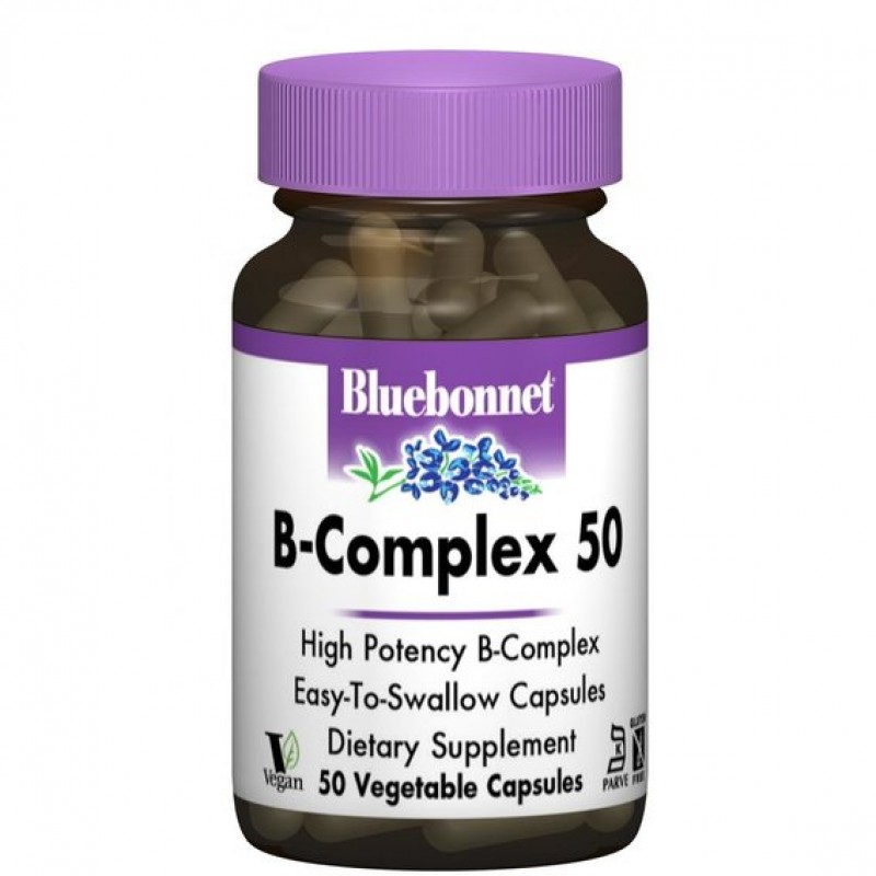 B-Complex 50 от Bluebonnet обеспечивает все водорастворимые витамины группы В, которые играют важную роль в клеточном метаболизме. Когда-то данная группа считалась одним витамином. Позже исследования показали, что они являются отдельными составляющими, которые часто сосуществуют в одних и тех же продуктах. Добавки, содержащие все восемь витаминов группы В (тиамин, рибофлавин, ниацин, пиридоксин, кобаламин, биотин, фолат, пантотеновая кислота), называются комплексом витамина В.
