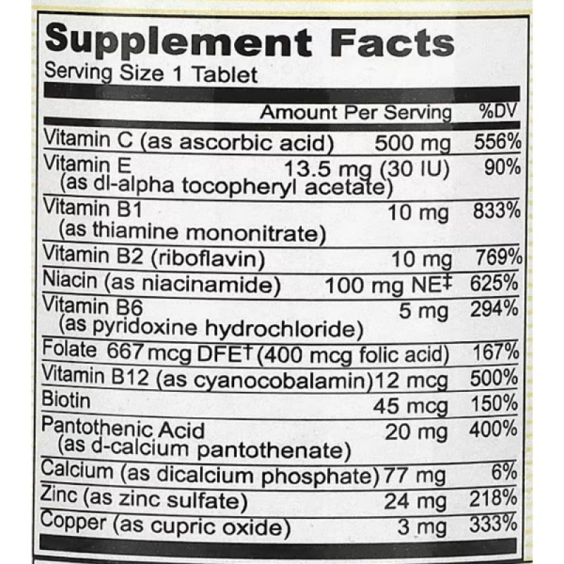 Mason Natural Stress B-Complex With Antioxidants + Zinc представляет собой комбинацию витаминов группы B, которые необходимы для организма.