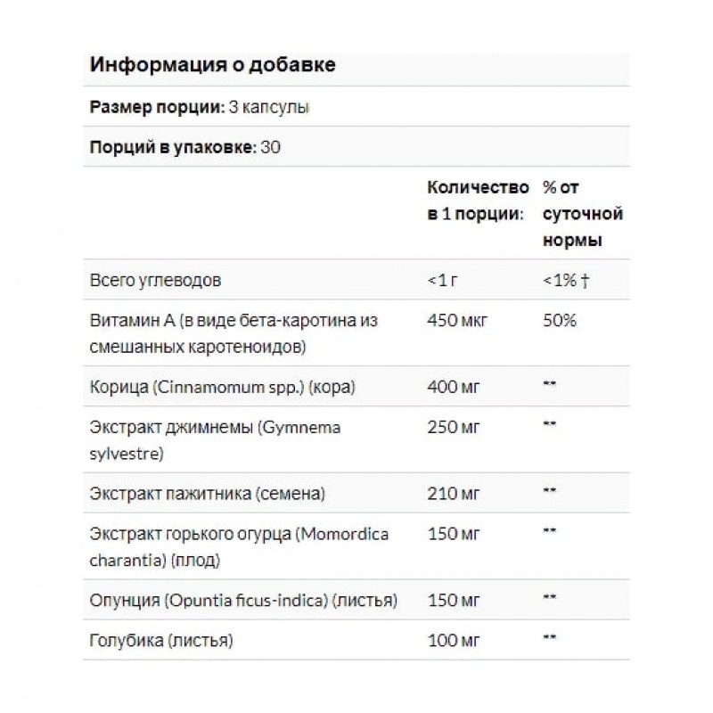 Данный продукт не следует применять во время беременности, при планировании беременности и лактации. Перед началом применения при приеме препаратов от диабета или каких-либо других лекарств следует проконсультироваться с врачом. Людям, страдающим от диабета, следует постоянно контролировать уровень глюкозы в крови.