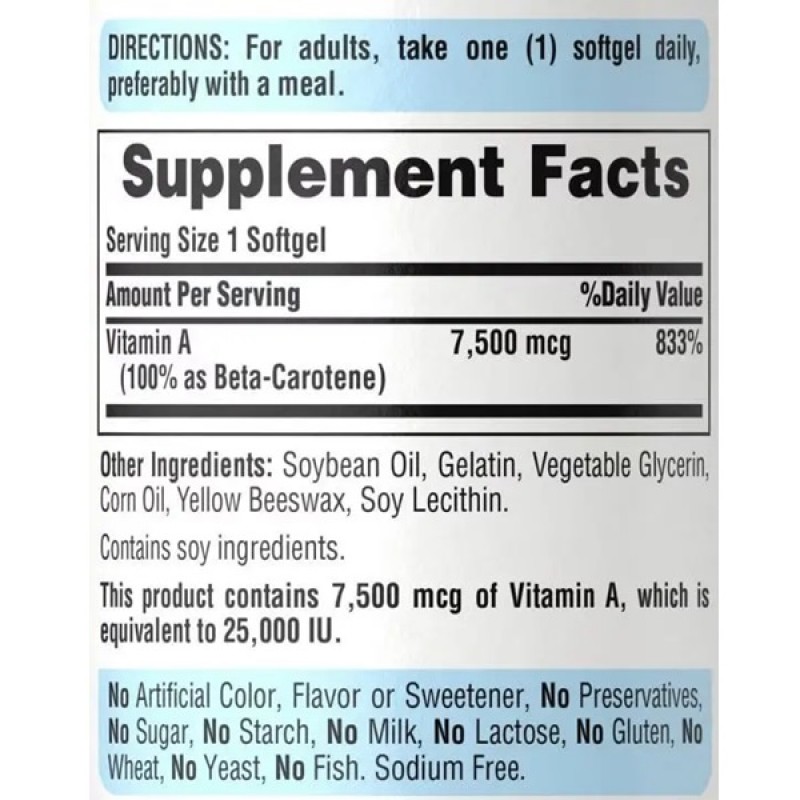 - Витамин A (100% бета-каротин): 25 000 МЕ