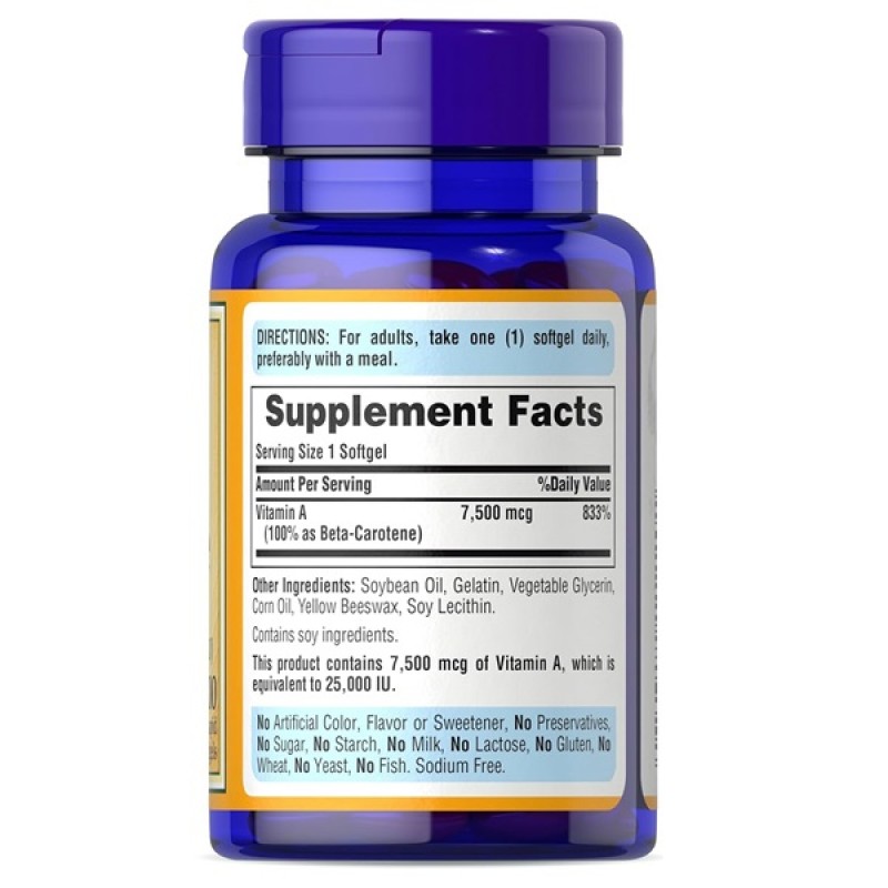 - Витамин A (100% бета-каротин): 25 000 МЕ