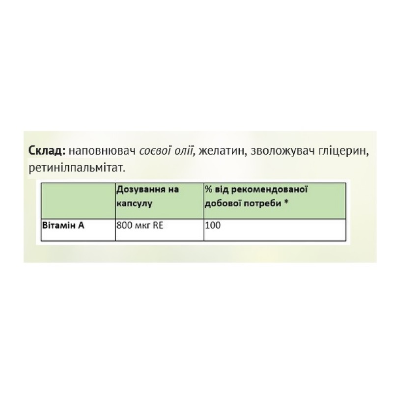 Витамин А – жирорастворимый витамин представлен в форме способной к запасанию в человеческом организме – ретинол пальматита.