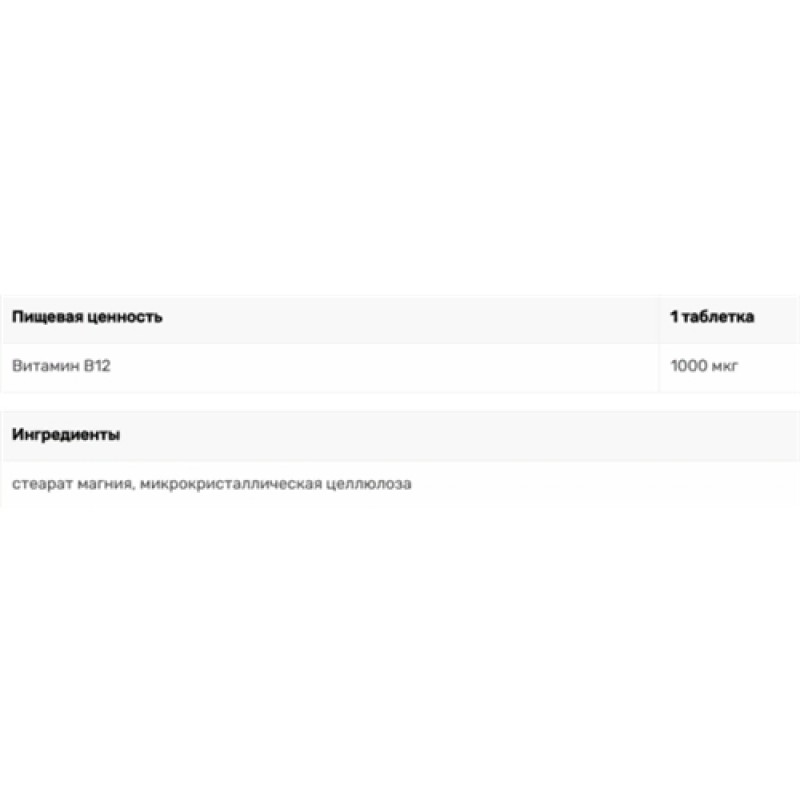 - Витамин В12: 1000 мкг