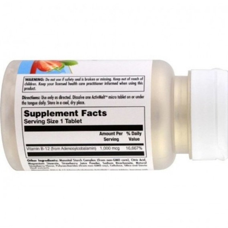 Витамин В12 (B-12 Adenosylcobalamin) 1000 мкг - таблетки наполненные натуральным клубничным вкусом, быстро тают во рту и предназначены для улучшенного усвоения организмом. Аденозилкобаламин - биологически активная форма витамина B-12, он является основной формой в митохондриальных клеточных тканях. Вегетарианский продукт.