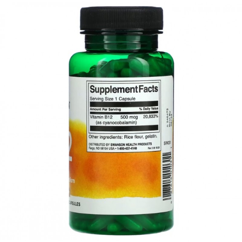 Swanson Vitamin B-12 является незаменимым витамином для общего здоровья и хорошего самочувствия. Он наиболее известен для производства энергии в организме и играет жизненно важную роль в формировании красных кровяных клеток, которые доставляют кислород ко всем частям тела. Он также работает с витамином B-6 и фолиевой кислотой, чтобы способствовать укреплению сердечно-сосудистой системы. В то время как потребление B-12 важно для всех, добавки могут быть особенно полезны для вегетарианцев, потому что витамин содержится главным образом в продуктах животного происхождения.