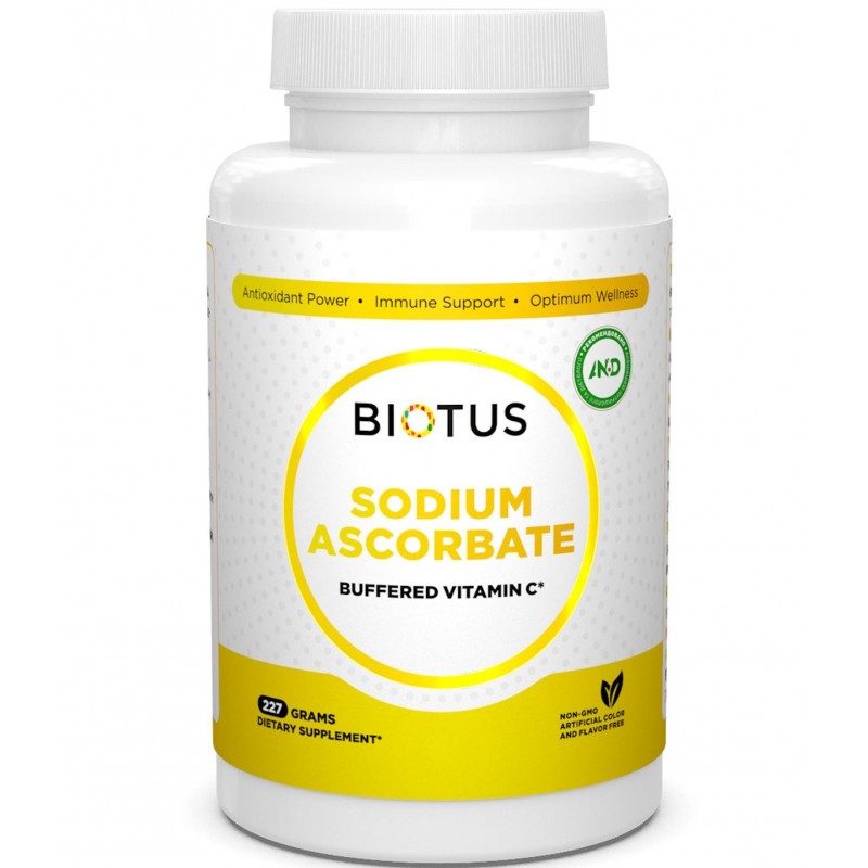 Буферизованный витамин С, Sodium Ascorbate от украинского бренда Biotus является источником аскорбата натрия.