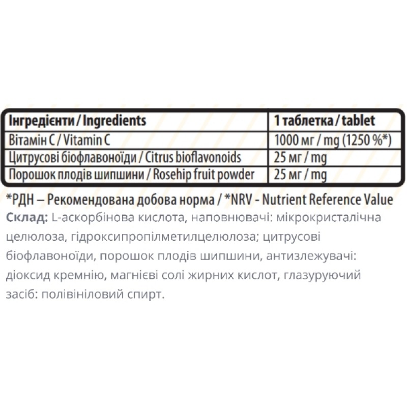 Добавка также содержит цитрусовые биофлавоноиды и порошок плодов шиповника, которые, в свою очередь, усиливают усвоение и биодоступность витамина С, помогая поддерживать его активность в организме на более длительное время.