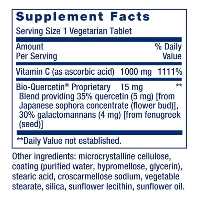 Витамин C с фитосомами биокверцетина (Vitamin C and Bio-Quercetin Phytosome) - это высокоэффективная добавка витамина С, дополненная ультра-абсорбируемой формой кверцетина.