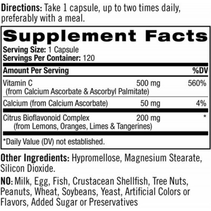 - Биофлавоноидный комплекс цитрусовых (из лимонов, апельсинов, лаймов и мандаринов: 200 мг