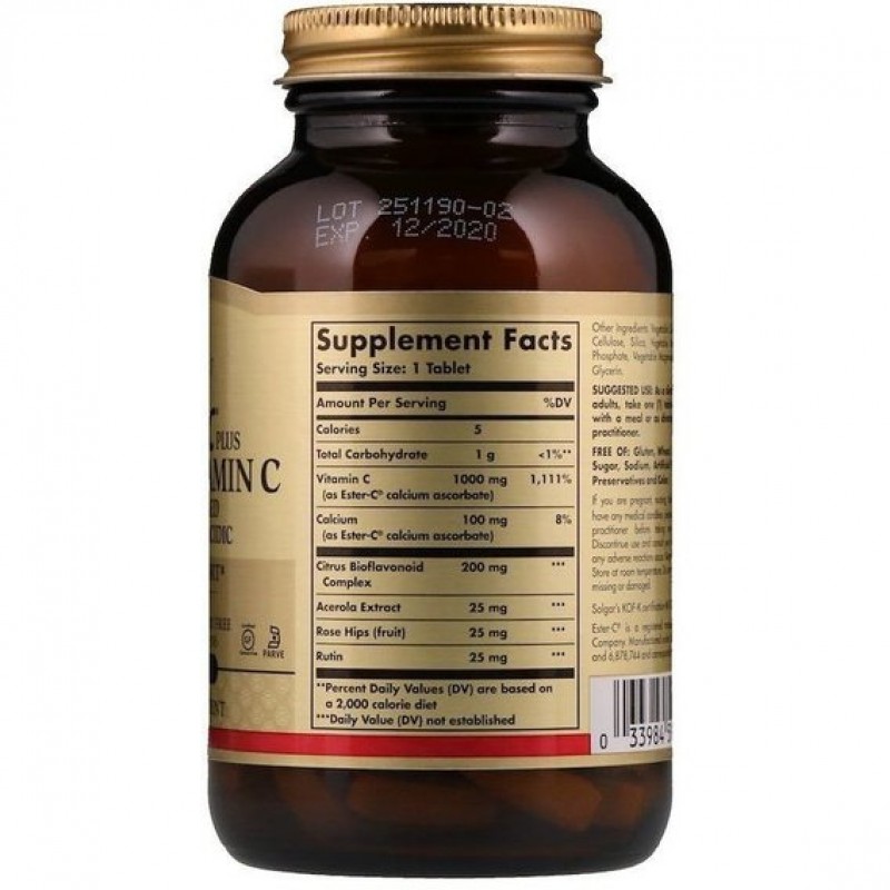 Витамин С проявляет антиоксидантные свойства, повышает устойчивость организма к инфекциям, участвует в синтезе коллагена, укрепляет стенки сосудов, снижая риск развития кровоточивости десен и появления синяков. Особенно велика потребность в витамине С у курящих людей. Эстер-С - запатентованная формула витамина С, рекомендуется в качестве биологически активной добавки к пище - дополнительного источника витамина С, источника флавоноидов (рутина) (СанПиН 2.3.2.1290-03 п.2.1)